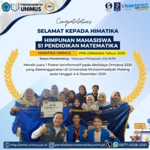 Prestasi membanggakan kembali diukir oleh oleh tim PPK Ormawa HIMATIKA dari Program Studi Pendidikan Matematika UNIMUS. Tim ini berhasil meraih Juara Terbaik 1 Kategori Poster Paling Informatif pada ajang bergengsi Abdidaya PPK Ormawa 2025.